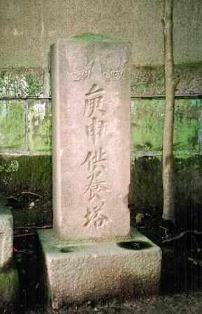 上辺に「日月」を浮き彫りし、中央に「庚申供養塔」と刻みます。