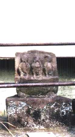 折損して下四分の一ほどが残っていて、下に三猿が彫られています。