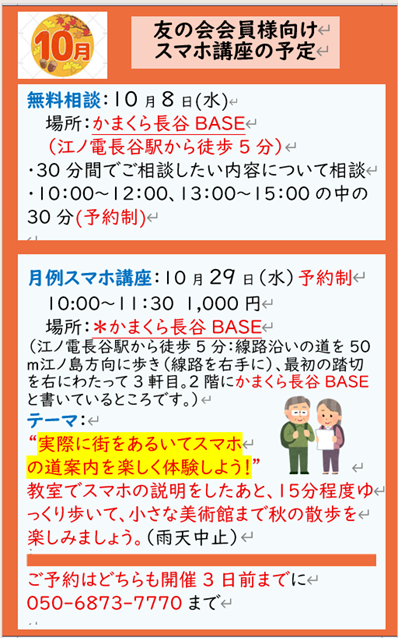 玉縄すこやかセンター 木午後(10月9日16日23日30日)