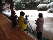 | △ 弘道館正門で傘をさしながら雪景色でも撮っているのか |