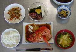 メニューは、「金目鯛の煮付け」、「きんぴら」、 「ウドとホタルイカの酢みそ和え」など。 はじめ、緊張気味の生徒達も、しばらくするとうち解け、 和気あいあいの楽しい料理教室になりました。