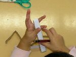 鎌倉市社会福祉協議会のプレールームに机を出し、お手本、作り方の説明書、材料や加工するハサミなどが並べられ、みんな一所懸命チャレンジしていました。