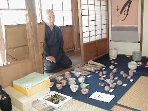 龍隠庵で、住職と同門の大木宗完さんが 米国、オレゴン窯で焼いた陶器の作品展が催された。