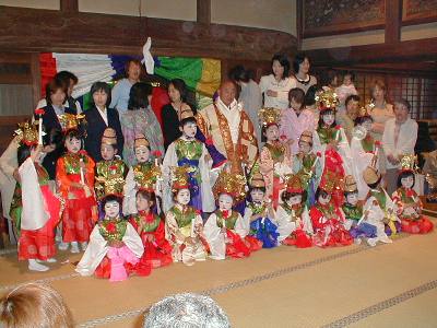 2002年は、20名近い近隣寺院のご住職と、壇信徒さんたち、20名近いお稚児さんの行列と、大勢の方々の参加で賑やかな中にも荘厳な法要が営まれました。 |