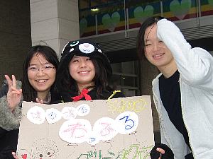 ![]() 以下は写真で綴る第19回のみどり祭風景です。 人気のあるイベント系なんと云っても人を集めるのはイベント系です。恒例の吹奏楽部の演奏です。 ![]() 吹奏楽部の演奏を三階から見ると・・・。 ![]() 中・高等部フェアリーコンサート ![]() 合唱団の演奏 ![]() フラダンスサークルは、観客を招き入れ、フラを指導しながら観客を楽しませていました。 ![]() 沖縄舞踊愛好会の公演も毎年人気の的です。 ![]() みどり祭の中でも、例年人気があるのは特別催し物で、今年は自民党の小泉進次郎先生の特別講演会でしたが大人気で、開場に近づくことすら不可能でした。 このページのTop 模擬店の宣伝隊今年は例年になく模擬店の宣伝隊の女子大生が多かったので・・・。![]()